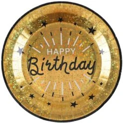 10 Assiettes Carton Rondes Birthday étincelant Or Irisé