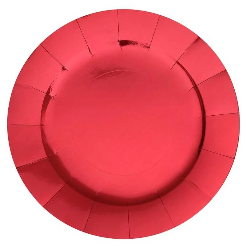 10 Assiettes De Fête, Carton Rouge Métallisées