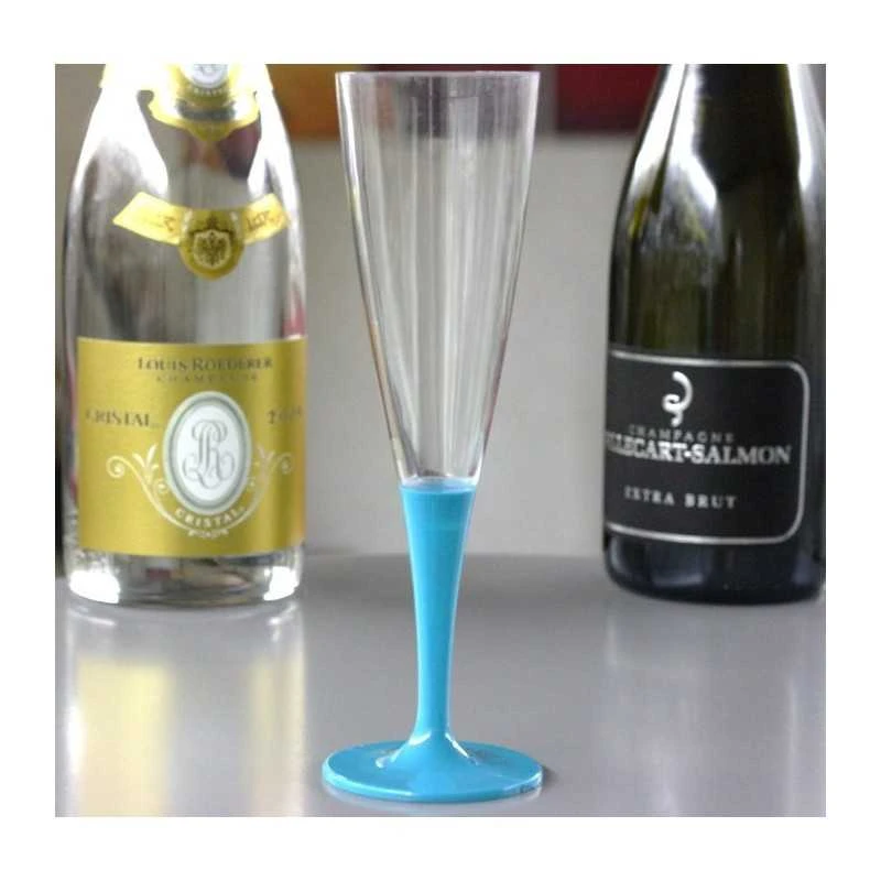 Lavable et réutilisable cette flûte à bulles avec son pied couleur turquoise est une trouvaille pour qui veut installer une ambiance originale et colorée sur la table, un buffet ou sur les plateaux qui circulent. Quelques principes de la coordination des couleurs seront respectés avec les autres articles de la table – assiettes, couverts, tasses, serviettes, etc. –. Le turquoise exprime en premier l’exotisme, le rêve, le bien-être et la sérénité. On peut le marier avec du jaune pour un esprit scandinave, avec l’orange pour un style tonique et créatif. Turquoise et vert, se marient bien dans un style contemporain. Essayez aussi avec un gris, c’est moderne et chic à la fois.