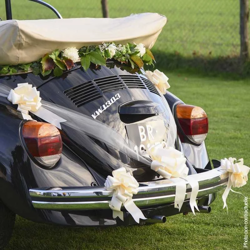 La couleur blanche de ce grand noeud apportera de la pureté et de la positivité à votre décoration, il pourra être placé sur les rétroviseurs, les poignées ou l’antenne de votre voiture mais aussi pour votre décoration de salle ou l’emballage des cadeaux.