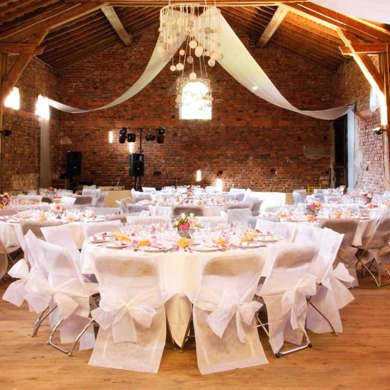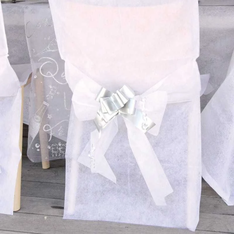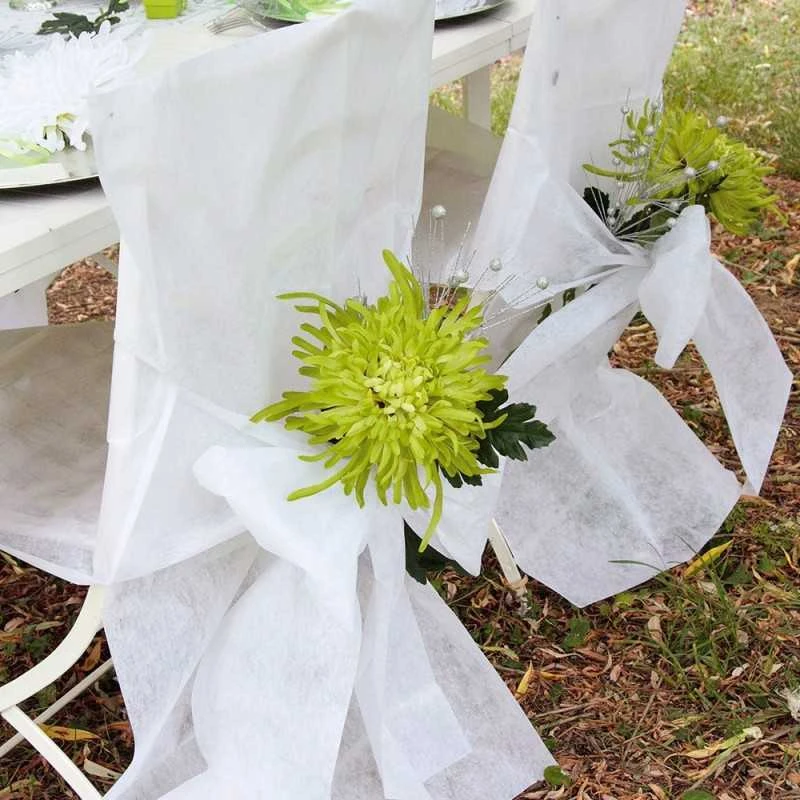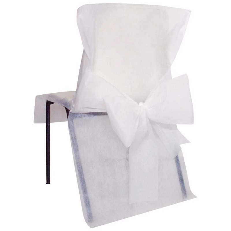 Envie d’embellir vos chaises ? Nous vous proposons ces magnifiques housses de chaise avec nœud en intissé blanches.