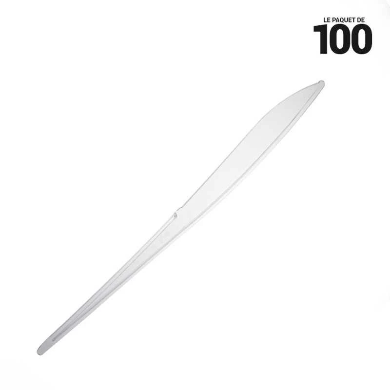 Ces 100 couteaux luxe cristal transparent sont d’une très belle qualitĂ© de fabrication et d’un savoir-faire Français. Ils possèdent une très bonne rigiditĂ©, sont issus d’une matière 100 % recyclables et sont rĂ©utilisables !