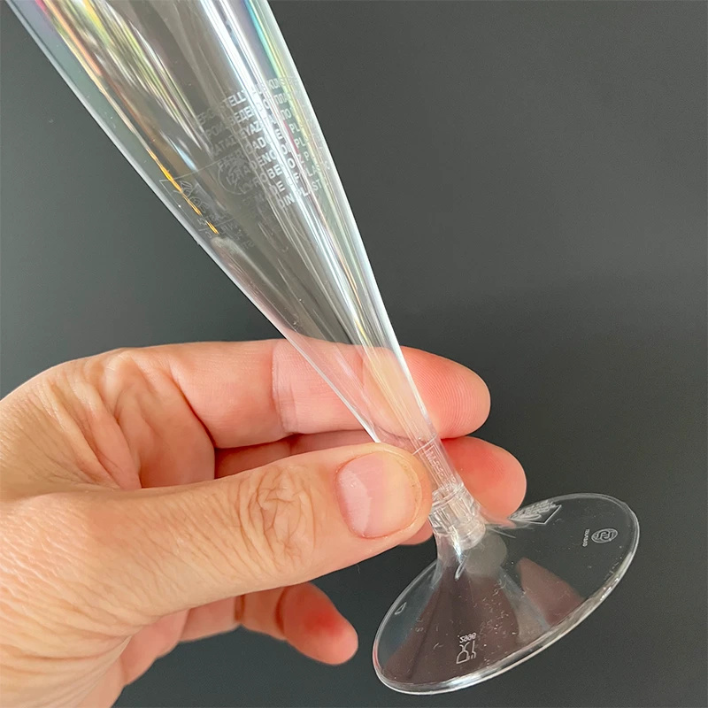 Fabriquée en 2 parties. Livrée en pied séparé à monter. Vous utiliserez cette flûte design transparente premium en toute quiétude et sans aucun risque de fuite.