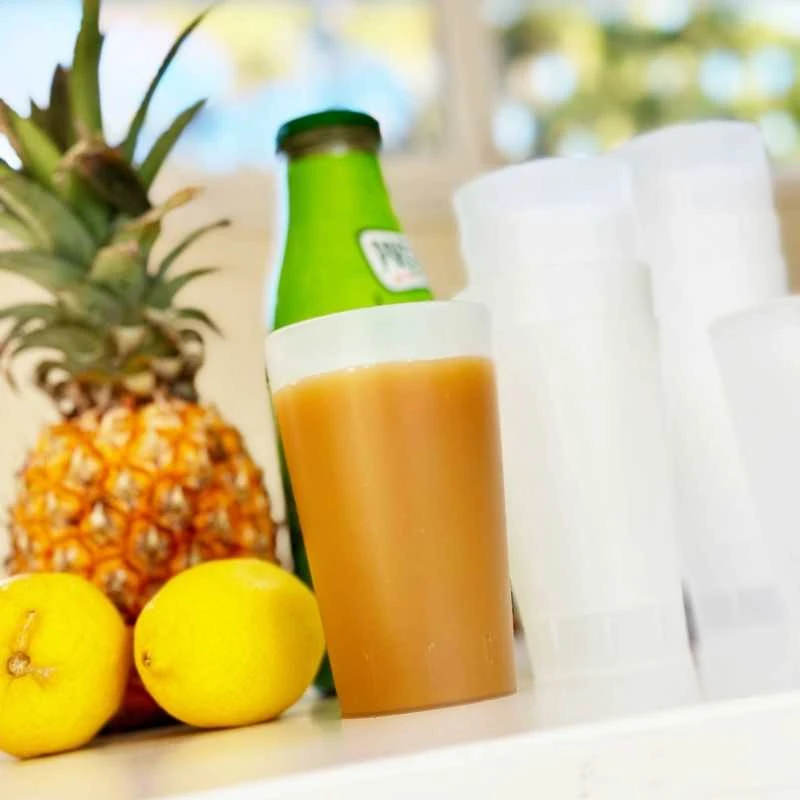 L’acidité des boissons telles que les jus de fruits, les sodas, la bière ou le vin n’affecte en aucun cas la qualité de nos gobelets, qui peuvent être réutilisés à plusieurs reprises sans problème.