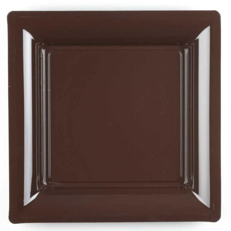 Nos assiettes en plastique carrées chocolat fabriquées en France.