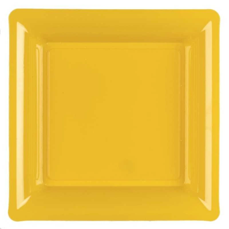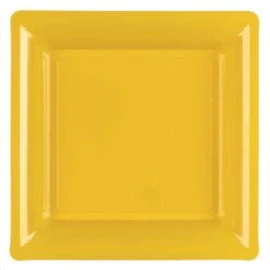 Nos assiettes en plastique carrées Jaune fabriquées en France.