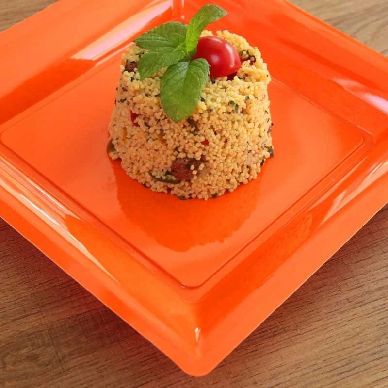 Chez Vaisselle Jetable Discount, une assiette carrée orange va effectivement donner un style particulier à votre table. La couleur et la forme y sont pour quelque chose !