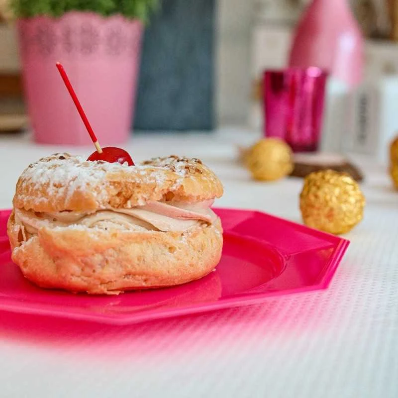 Commençons par sa forme, octogonale. C’est une forme intéressante pour son esthétique complexe à huit côtés. C’est pour cela qu’elle ne laisse pas indifférent et que nous l’avons retenue. Elle est à mi-chemin entre un carré et un cercle. Dans la symbolique, on dit que c’est la forme de la transition d’un monde à l’autre. D’ailleurs les fonts baptismaux étaient souvent de forme octogonale. Du coup ces assiettes fuchsia et octogonales vous ne les regarderez plus de la même manière !