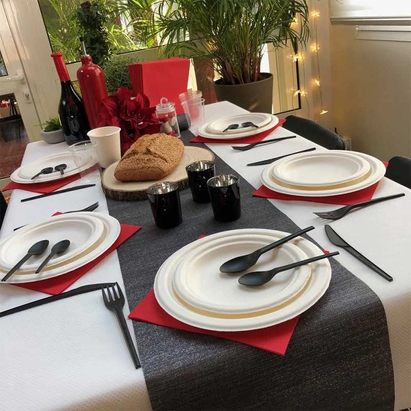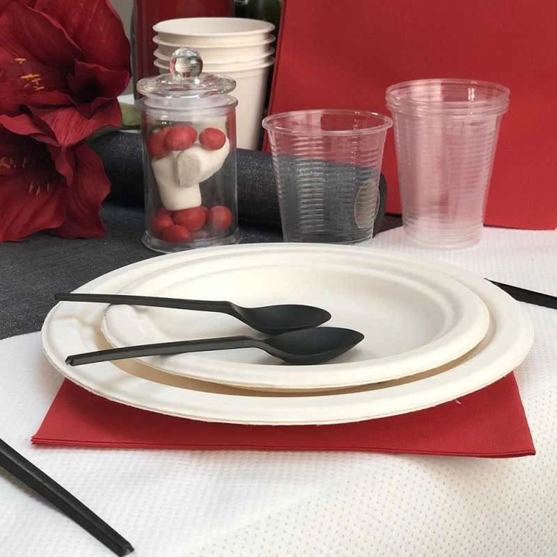 Vaisselle en fibre de canne Ă sucre.