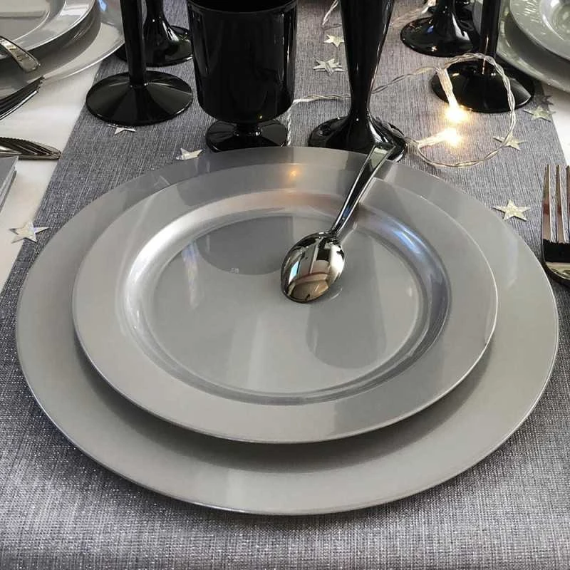 Les tables de fête couleur argent.