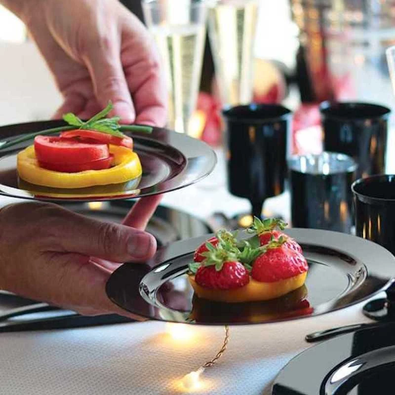 Cette assiette est disponible en deux formats. Vous l’utiliserez pour servir des plats principaux avec son format de 24 cm et des entrées ou des desserts avec sa taille de 19 cm. Vos invités apprécieront son équilibre et son confort d’utilisation lorsqu’ils seront debout durant un apéritif, un lunch ou assis à une table.