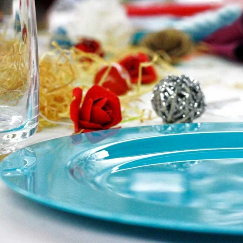 Après il faudra vous projeter dans les associations avec les serviettes, la nappe, les couverts. Pensez à une assiette turquoise posée sur une autre de couleur grise. Une belle nappe ou des serviettes orange. Des couteaux, fourchettes couleur vert anis. Les associations sont très nombreuses pour un effet garanti !