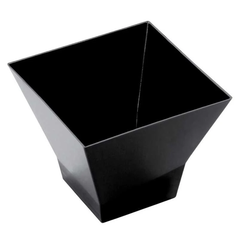 Découvrez nos magnifiques verrines pagode en plastique réutilisable noir 9 cl. Idéales pour présenter vos apéritifs, mousses et autres préparations salées et sucrées, elles sont empilables et très stables pour le service.