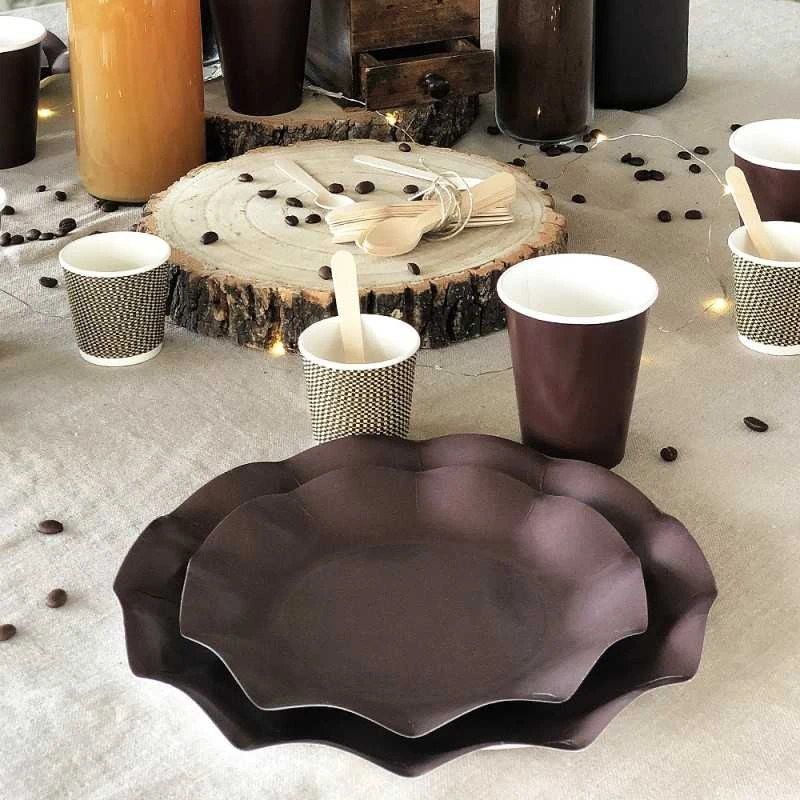 Tout le charme de ces assiettes chocolat résulte de leur forme ronde classique. Une forme agrémentée de très jolis rebords évoquant la forme d’un pétale de fleur, l’effet est design, superbe et charmant !