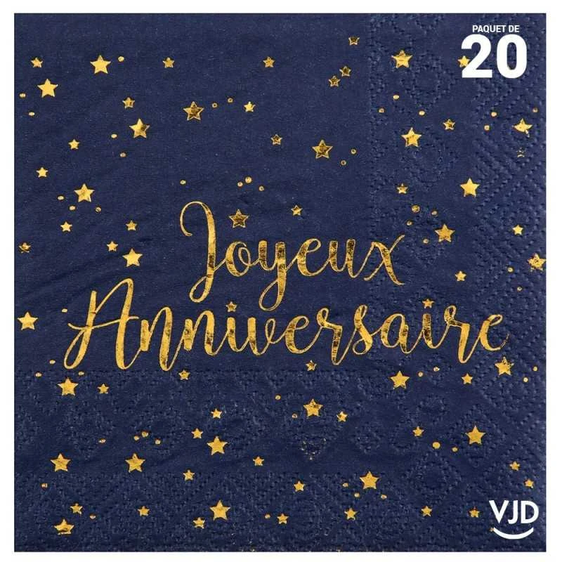 Grâce à leur décor soigné sur fond marine, ces serviettes de fêtes mettront en illustration des étoiles dorées ainsi que l’inscription Joyeux anniversaire ! Un rendu d’ensemble particulièrement chic et élégant.