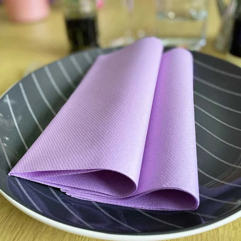 Cette serviette parme en non-tissé comblera vos invités en tous points. Enfin une serviette qui leur fera la même impression qu’une véritable serviette en tissu. Et que dire de sa douceur…