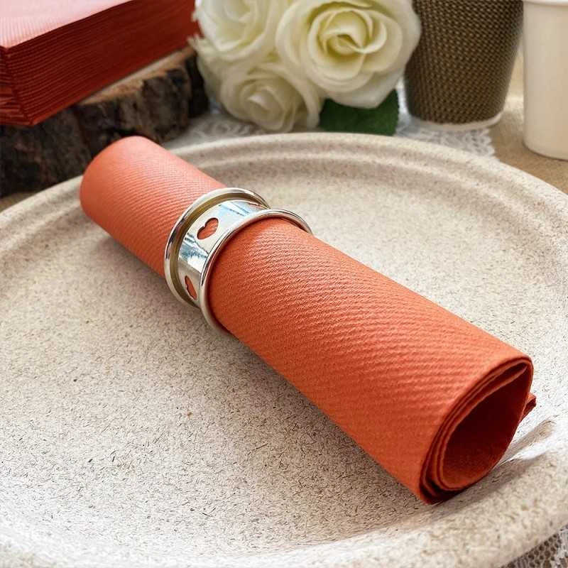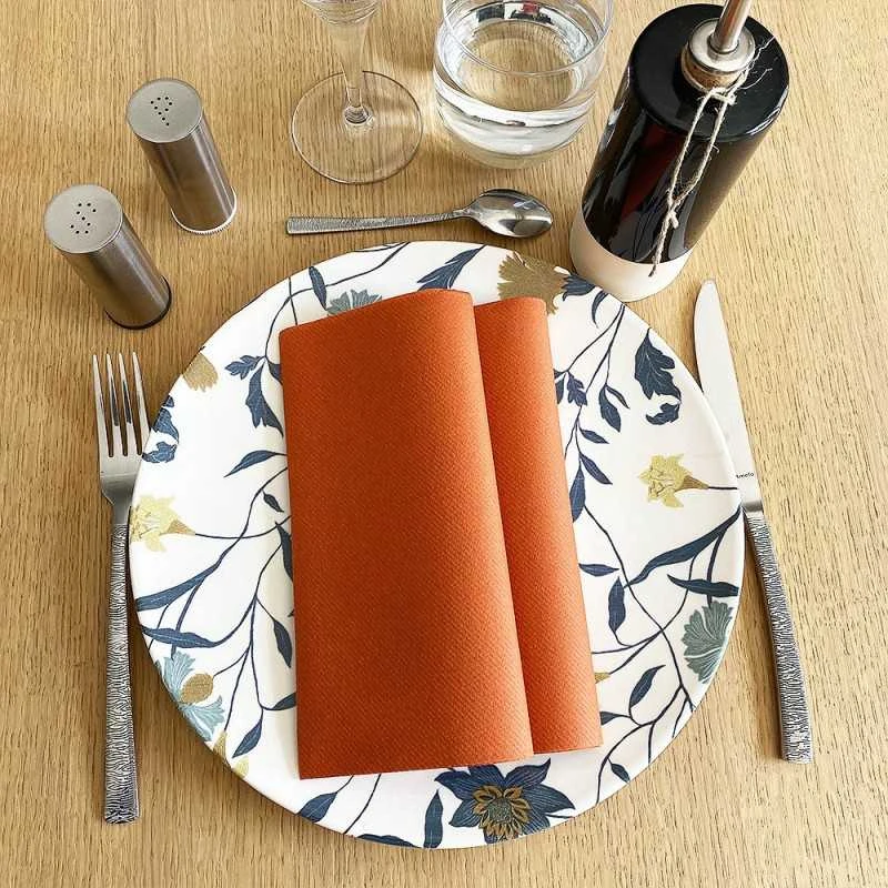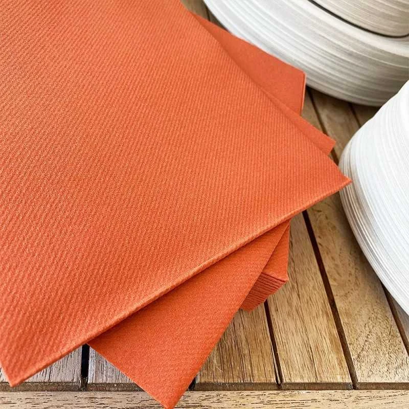 Une serviette terracotta en non-tissé avec une épaisseur de 65 gr/m2, c »est du jamais vu ! Une épaisseur bien au-delà des serviettes en non-tissé classiques. Qu’il est confortable d’utiliser ce genre de serviette à table !