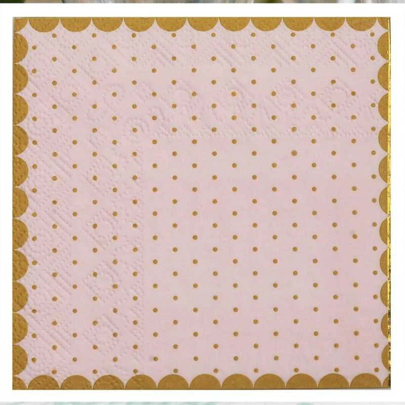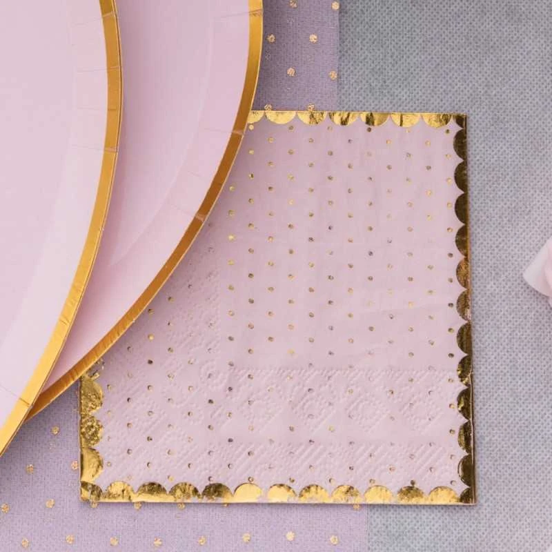 20 Serviettes Passe Partout Rose Et Or 25 X 25 Cm