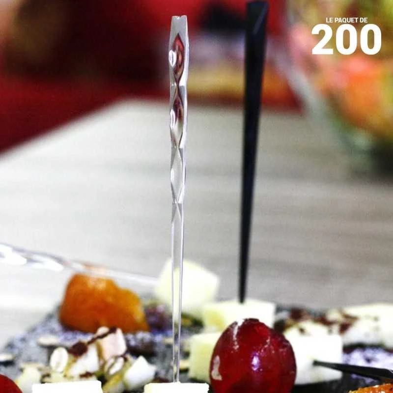 En plus ces pics transparents sont suffisamment longs pour piquer plusieurs condiments et confectionner des petites brochettes sympathiques et gourmandes.