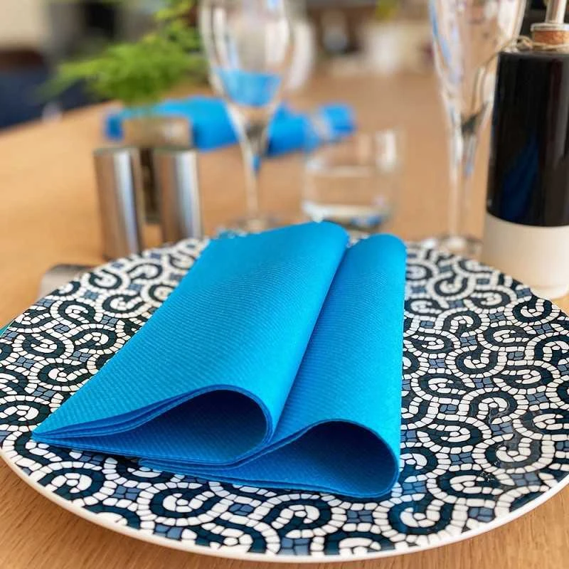 Avec une serviette aqua blue en non-tissé absorbant 6 fois son poids, les petits accidents de table seront vite épongés. Rien n’est plus désagréable qu’une serviette incapable d’éponger un peu d’eau…