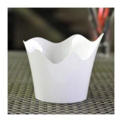 Cette verrine apéritive blanche « orchidée » de 9 cl présente un design très particulier avec des sortes de vagues sur tout le pourtour qui donnent une ligne moderne et originale mettant en valeur les ingrédients de la recette que vous aurez choisie. Cette verrine est un modèle de ce qui se fait de plus chic en la matière.