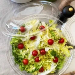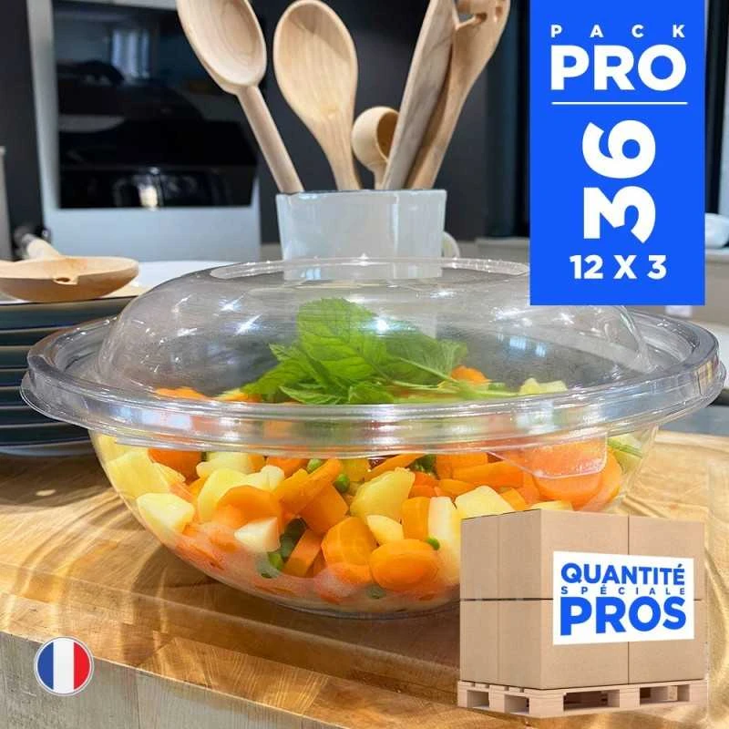 L’avis de VJD : Saladier + couvercle en PET recyclable et réutilisable. Très belle transparence. Contenance idéale pour une belle salade avec couvercle garantissant une excellente hygiène. Ensemble de qualité « gerbable » grâce au centre du couvercle adapté à recevoir un saladier.