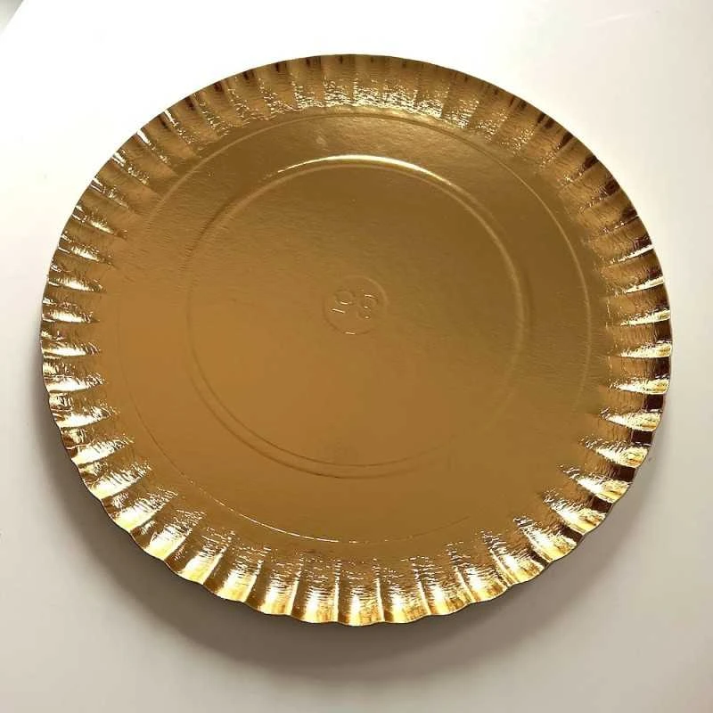La couleur dorée de cette assiette de présentation rigide permet de mettre en valeur vos préparations : apéritifs, gâteaux et pâtisseries en tout genre.