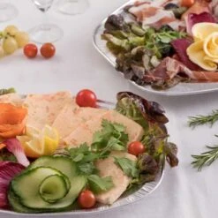 Ce plateau en aluminium réutilisable vous permet de disposer un assortiment de charcuterie, poissons, viandes découpées, fromages ou même légumes crus accompagnés d’une sauce. Vous pouvez également l’utiliser pour disposer des desserts, gourmandises et mignardises sucrées.