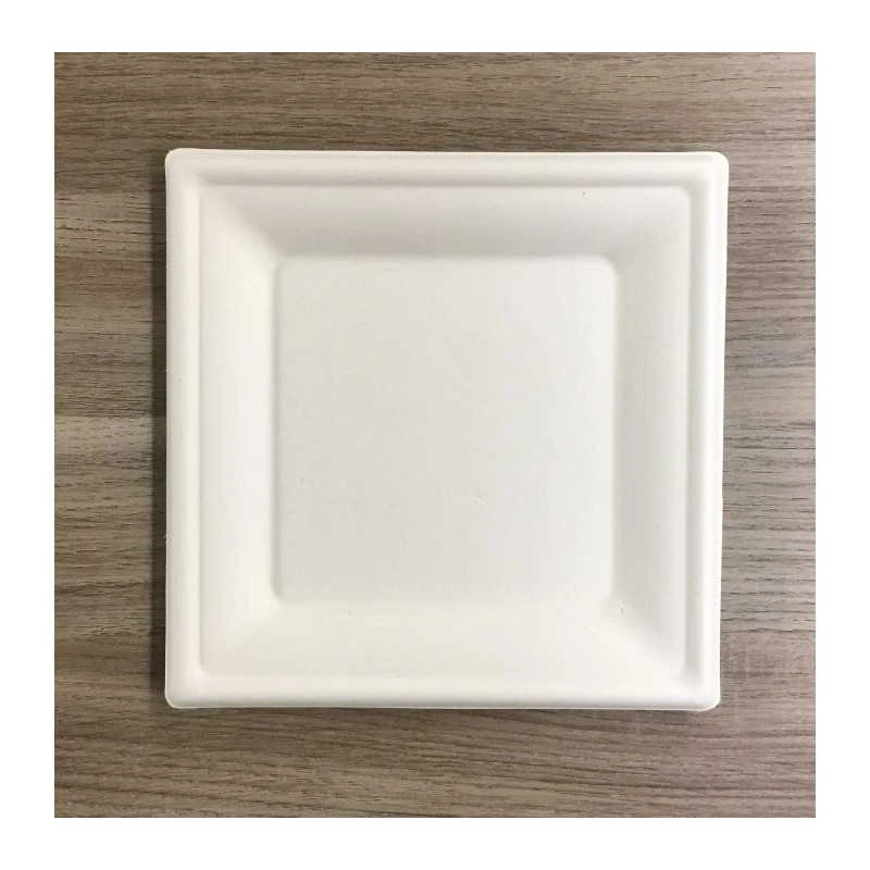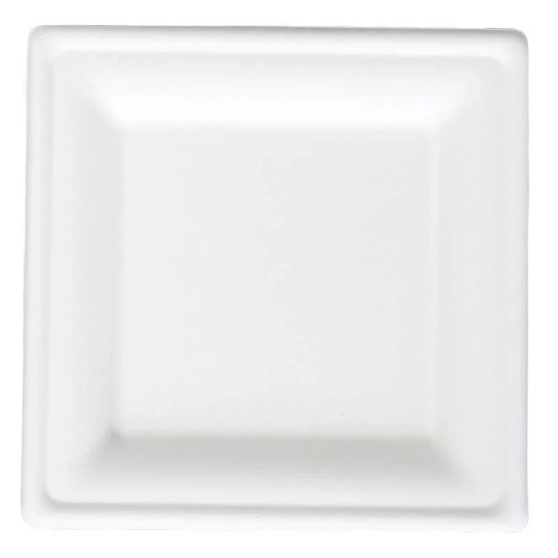 50 Assiettes Carrées Fibres Naturelles Blanches 20 Cm