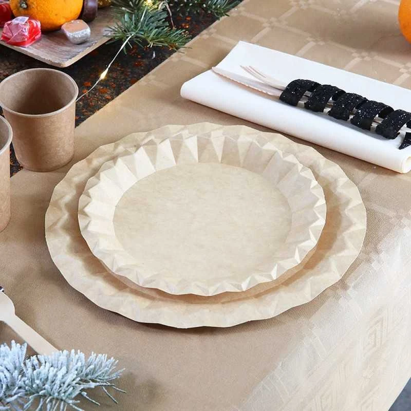 Lorsqu’on y ajoute un design particulier, le kraft montre à quel point on peut jouer sur des combinaisons naturel / moderne. Pour cette assiette, le design de son pourtour, en forme de collerettes à facettes donne une superbe allure. En plus il lui confère un aspect pratique en permettant un bon maintien des contenus.