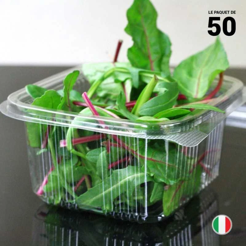 Elle rend de sacrés services cette barquette 500 gr taillée sur mesure pour une salade, une sauce, quelques haricots verts une petite préparation par exemple… en fait pour tout ce que vous voulez conserver. Que ce soit pour une fête entre amis ou en famille, un pique-nique, ou autre repas, pour apporter ou pour emporter, la barquette que voici est idéale et offre de parfaites conditions d’hygiène.