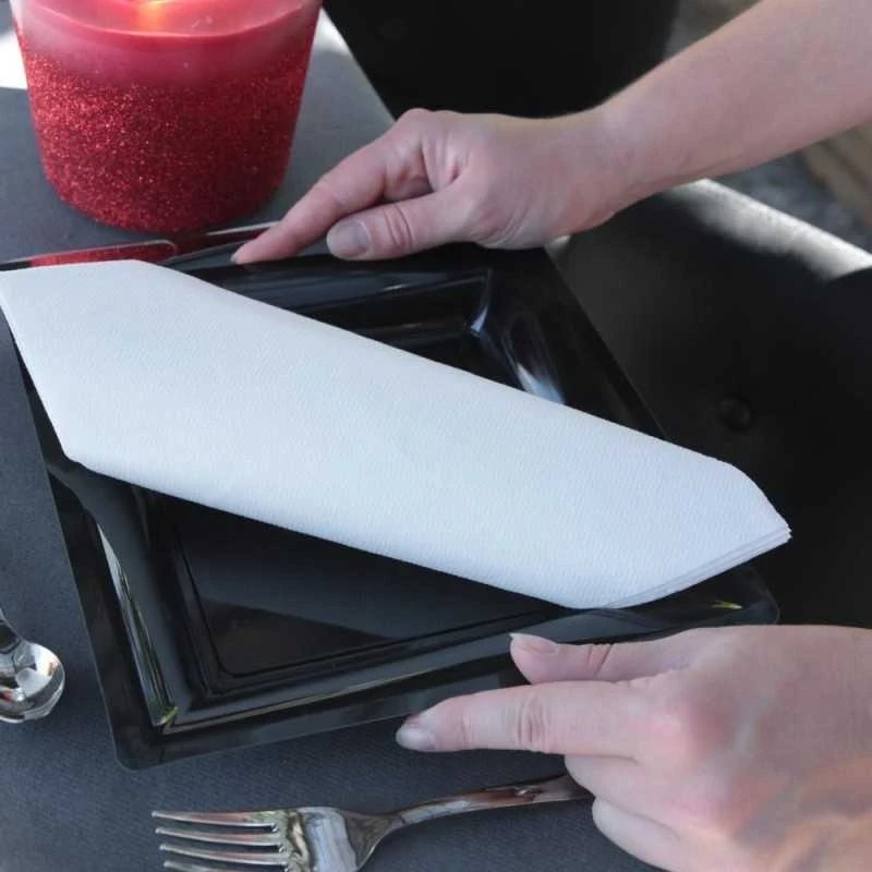 Nos serviettes en non-tissé blanche 40×40 cm fabriquées en France.