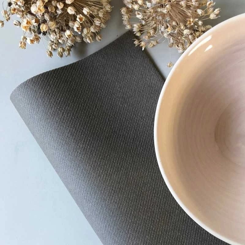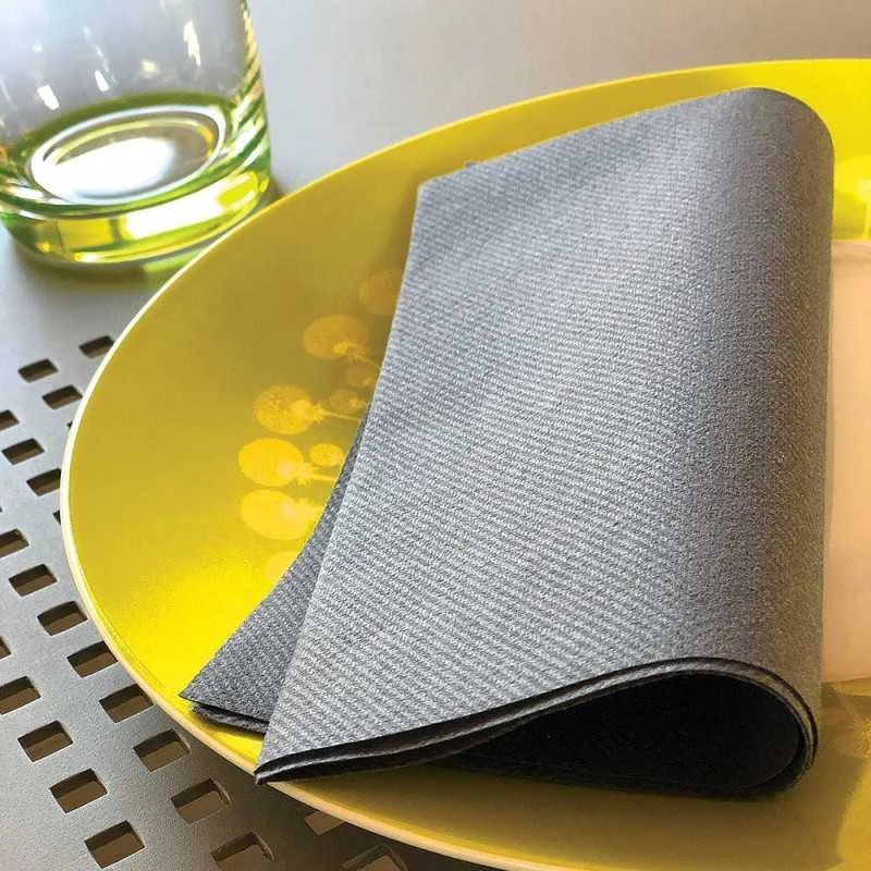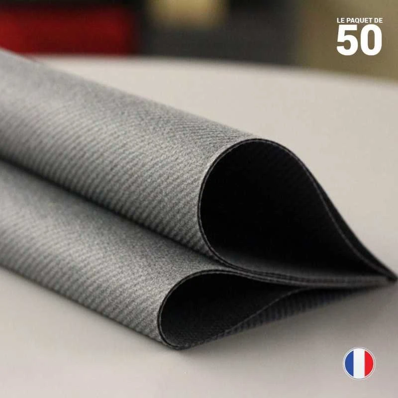 Cette serviette en non-tissé est couleur gris titane. La couleur grise est un véritable caméléon qui change de caractère selon les couleurs avec lequel on la marie. Associé à un taupe ou un beige, il apporte de la douceur, de la noblesse lorsqu’il est marié à un bleu profond.