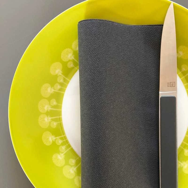 Adoptez cette serviette gris titane sans hésiter pour un des éléments de votre table. Accompagnez-les avec des assiettes, des verres, une nappe dans d’autres couleurs comme celles décrites plus haut. Et pour le côté pratique, la dimension généreuse de cette serviette – 40X40 – permet de la placer très confortablement sur les genoux ou remontée un peu plus haut ou encore autour du cou si vous dégustez un plat en sauce ou des crustacés dont la consommation s’avère périlleuse ! Pour ce qui est de sa texture, cette serviette est plus absorbante, plus douce au toucher. Pourquoi cela ? Essentiellement parce qu’elles sont fabriquées en non-tissé et leur épaisseur vous donnera l’impression d’avoir une serviette en tissu. Des serviettes en non-tissé gris titane… vous allez surprendre et donner une présence inattendue aux autres couleurs des autres éléments de votre table pour des styles et des ambiances à la forte personnalité. 0420319©