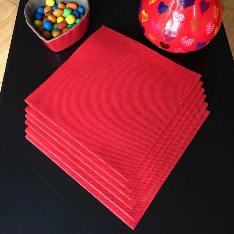 Et pour le côté pratique, la dimension généreuse de cette serviette – 40X40 – permet de la placer très confortablement sur les genoux ou remontée un peu plus haut ou encore autour du cou si vous dégustez un plat en sauce ou des crustacés dont la consommation s’avère périlleuse ! Pour ce qui est de sa texture, cette serviette est plus absorbante, plus douce au toucher. Pourquoi cela ? Essentiellement parce qu’elles sont fabriquées en non-tissé et leur épaisseur vous donnera l’impression d’avoir une serviette en tissu. Des serviettes en non-tissé rouge… vous allez surprendre et donner une présence inattendue aux autres couleurs des autres éléments de votre table pour des styles sophistiqués, modernes et branchés, des ambiances à la forte personnalité … Hola, caliente ! 0421218©