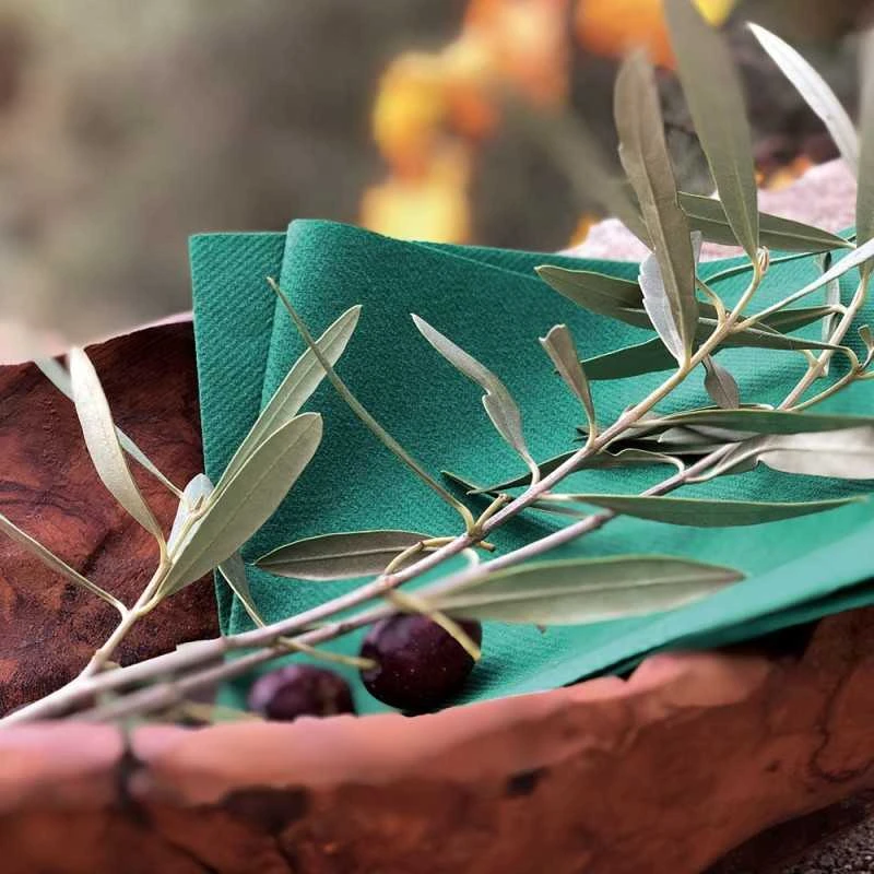 Ces serviettes en non-tissé vert sapin combinent avec bonheur une technique de fabrication moderne qui n’occulte en rien leur confort d’utilisation et leur couleur particulièrement nature et apaisante. En choisissant des associations créatives avec nos nappes et nos chemins de table, vous aurez la certitude de créer une ambiance très personnelle. 0420419©