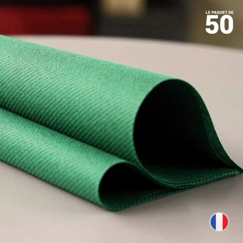 Cette serviette en non tissé est couleur vert sapin. La couleur vert sapin est une nuance de vert qui est la couleur la plus répandue dans la nature. Le vert est une couleur apaisante, rafraîchissante et même tonifiante.Vos serviettes couleur vert sapin serontparticulièrement bien associéesavec du bleu. Belle harmonie à coup sûr !Voyez nos couverts ou nos assiettes déclinées dans plusieurs nuances de bleu. Il y a aussi le vert et le rose. Chez Vaisselle Jetable Discount, on aime beaucoup, cela donne une touche de sophistication. Il y a aussile vert et le violet pour une belle touche d’élégance. D’autres associations tout aussi intéressantes, sont possibles avec le marron, l’ocre, le crème ou le taupe, voir le rose. Au passage on vous signale nos chemins de table en toile de jute naturelle. Alors, pour parfaire l’ambiance que vous avez en tête, la voie est tracée pour le choix des couleurs d’assiettes, de la nappe, des verres, etc.