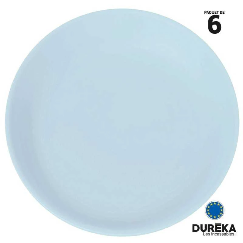 6 assiettes Duréka pastel bleu incassable, réutilisable 27,4 cm