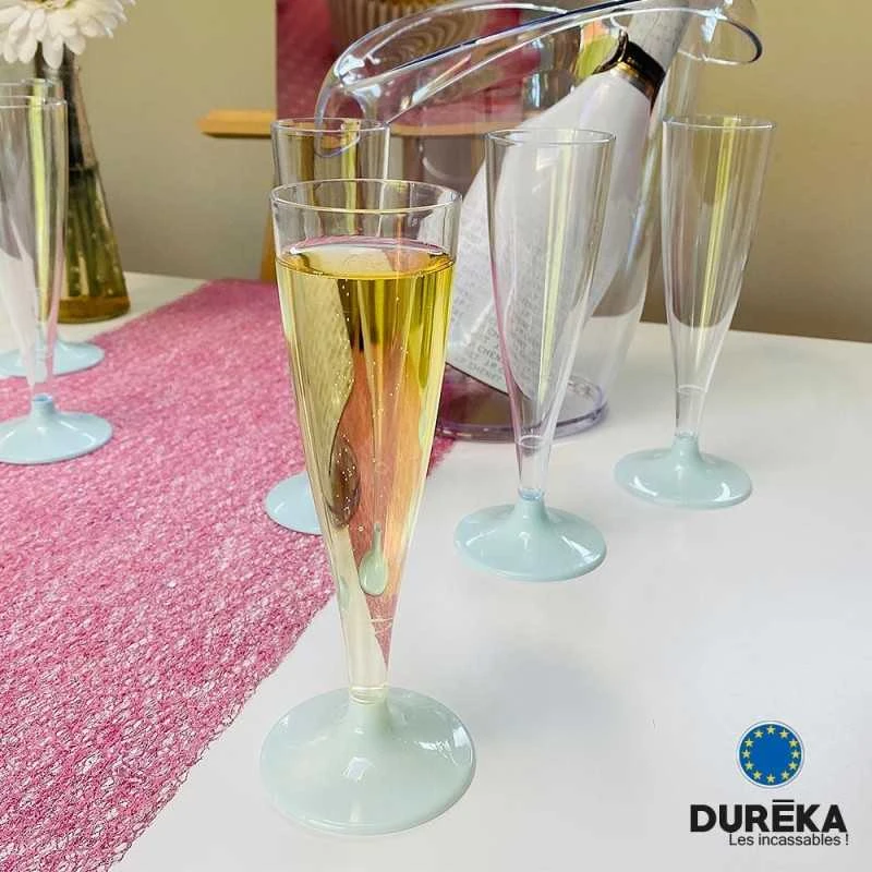 Avec notre gamme Duréka® – Les Incassables, découvrez nos superbes flûtes transparentes avec pied blanc démontable incassables, réutilisable indispensables pour toutes les fêtes, événements, mariage, anniversaires mais idéal également pour les professionnels de la restauration, traiteurs…