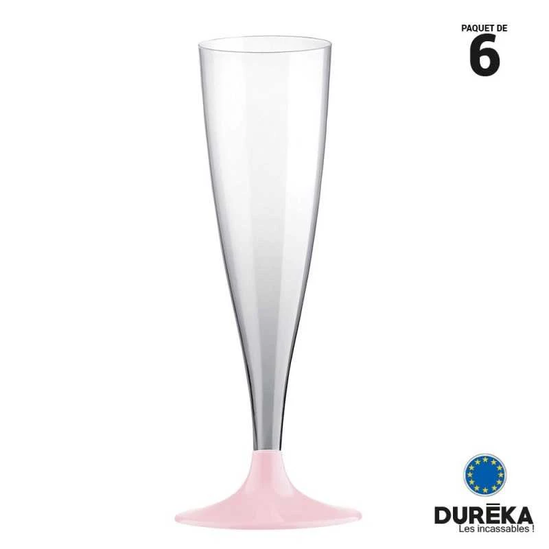 6 Flûtes Duréka Avec Pied Rose Incassable 13,8 Cl
