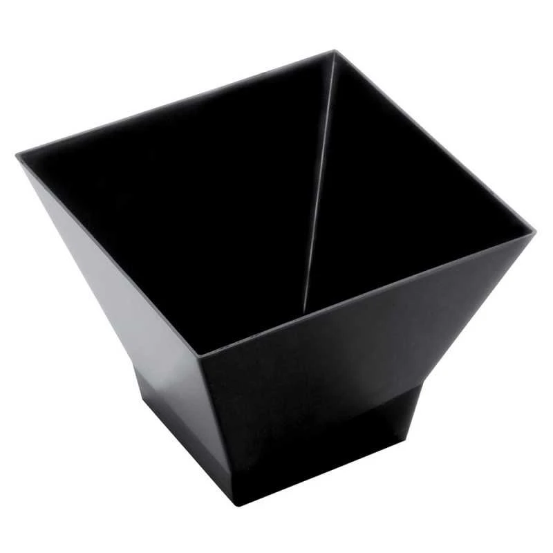 Découvrez nos magnifiques verrines pagode en plastique réutilisable noir 20 cl. Idéales pour présenter vos apéritifs, mousses et autres préparations salées et sucrées, elles sont empilables et très stables pour le service.