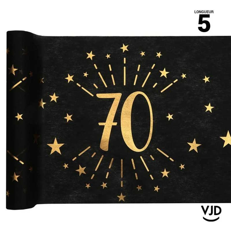 Avec ce chemin de table étincelant métal or vous déroulerez un vrai spectacle sur votre table. Une façon sublime de fêter un anniversaire pour des 70 ans !