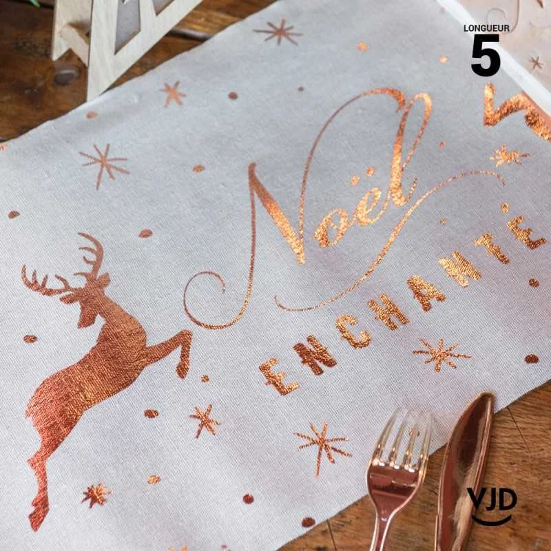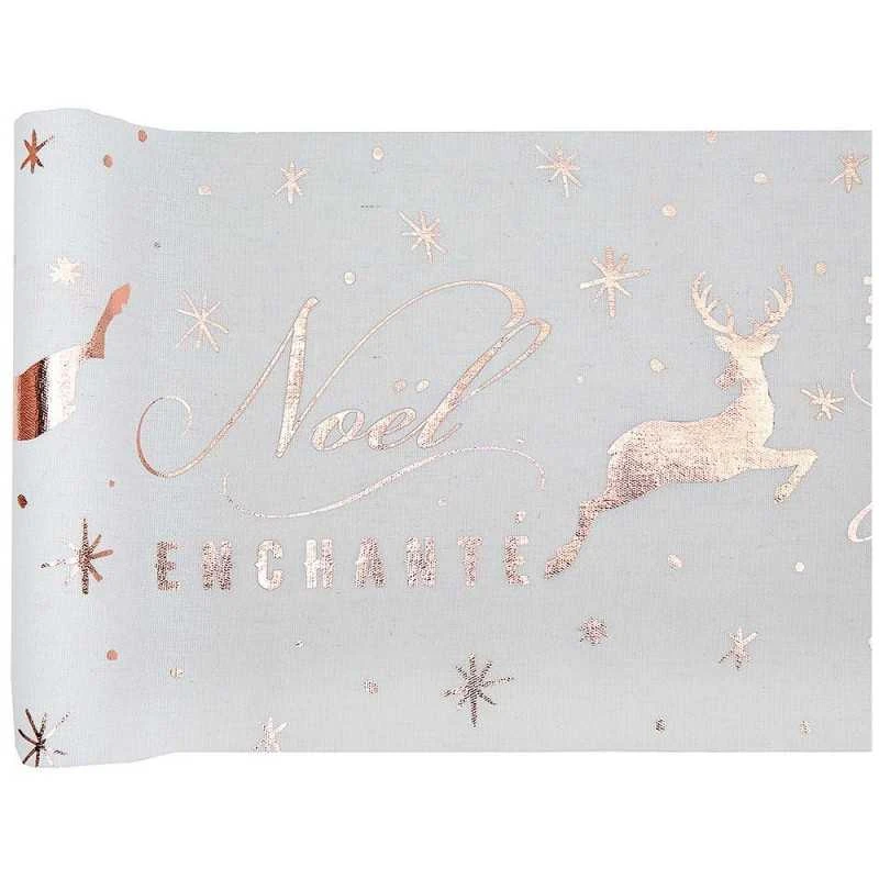 Chemin De Table Cerf Enchanté Blanc Et Rose Gold 5 M