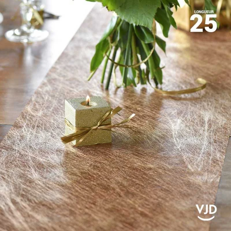 Chemin de table Fanon métallisé premium couleur cuivre. 25 mètres