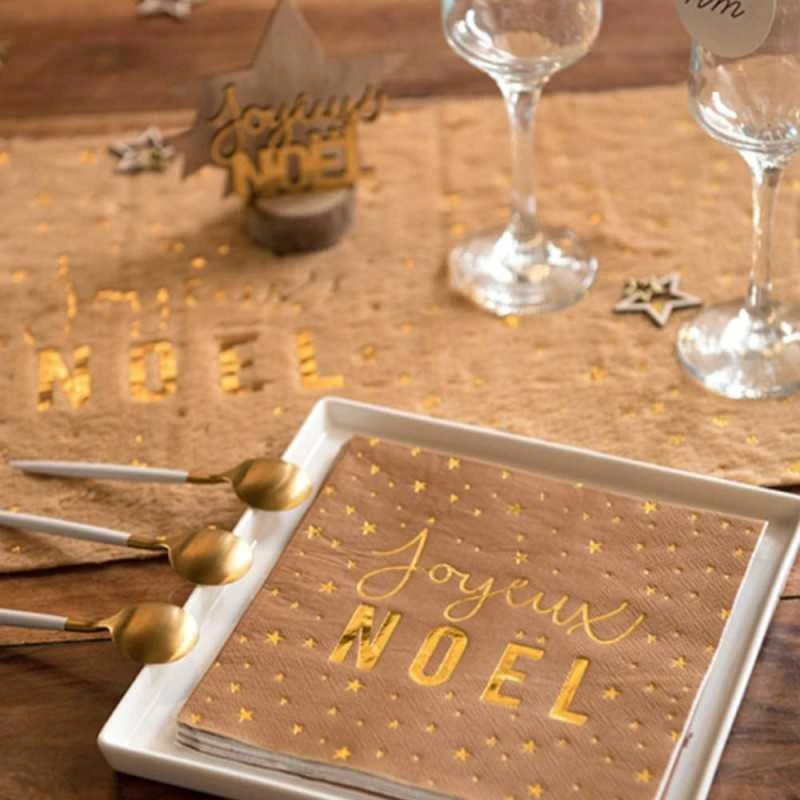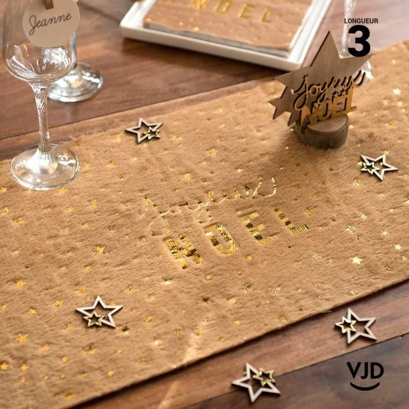 Motif étoile avec lettrages Joyeux Noël. Un chemin de table largeur 28 cm, en rouleau de 3 mètres.