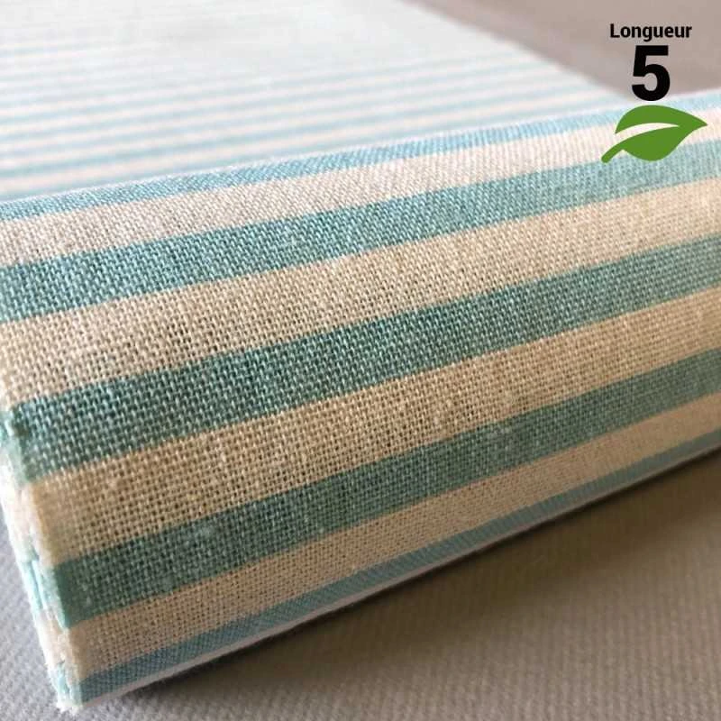 La grande qualité de la fabrication de ce chemin de table et de la matière utilisée lui permet de se dérouler parfaitement et garantit un effet visuel très naturel. Il est proposé en rouleau de 29 cm de largeur. Comme pour les autres usages du lin, habillement, linge de maison, ameublement, ce chemin de table présente des caractéristiques de solidité, de résistance à la lumière et à l’eau qui se conserveront dans le temps. D’ailleurs les fines bandelettes entourant les momies des pharaons étaient en lin !