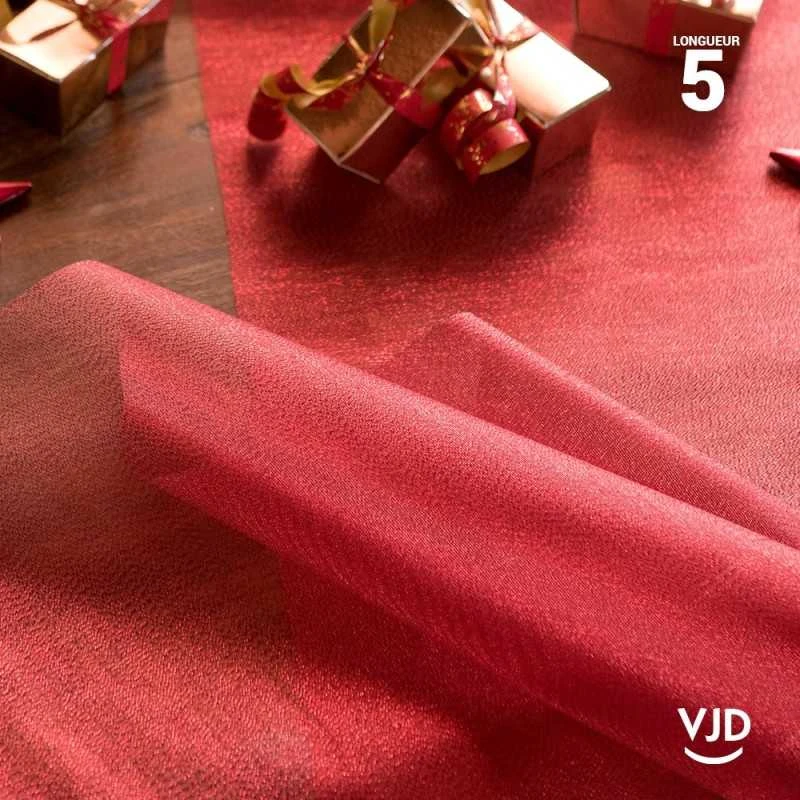 Chemin De Table Organdi Métallisé Rouge 5 M