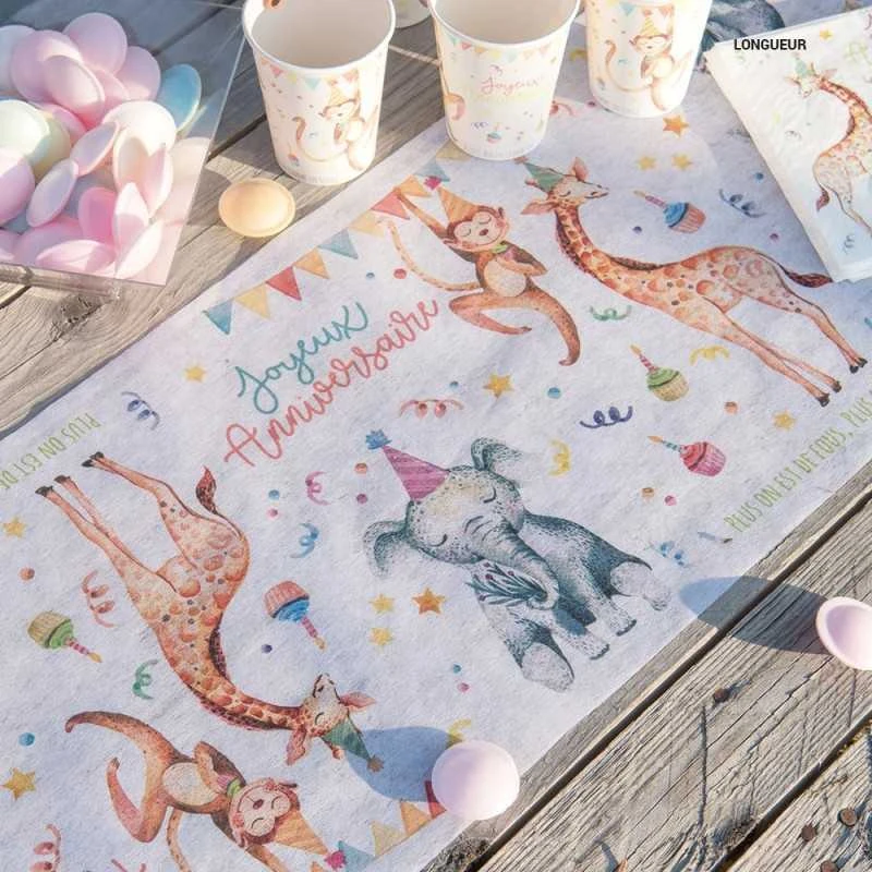 Ce chemin de table Zoo Party est fabriqué dans une matière résistante et possède une largeur de 30 cm. Une bande décorative idéale pour y placer dessus gobelets, carafes et autres plateaux de présentation !