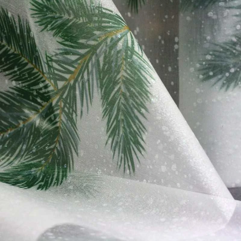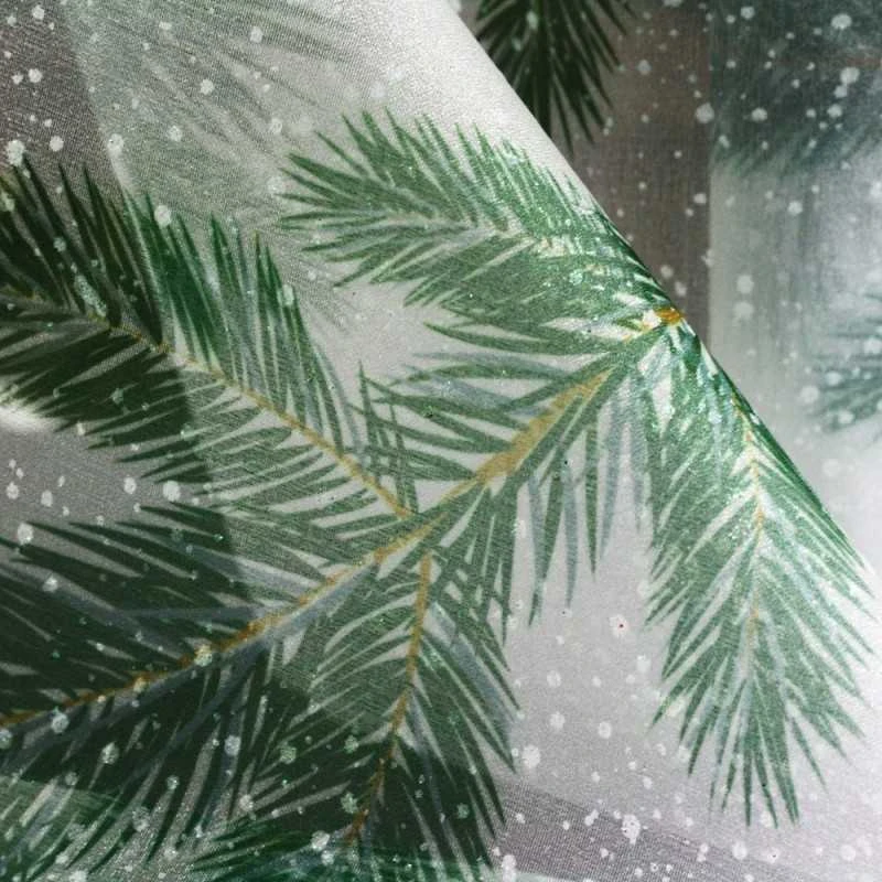 Vous pensiez avoir tout vu en matière de chemins de table ? Vous étiez un peu tristounet de n’avoir pas trouvé le chemin de table spécifiquement Noël ? Voici un de nos modèles qui ne se contente pas de quelques brillances ou de motifs simplement posés comme ça ! Pas de ça chez vous ! Voici un chemin de table dont la matière genre organza est constellée de petites paillettes incrustées sur un fond blanc transparent. Cette texture donne l’impression que les branches de sapin sont en relief. Vos assiettes, verres, les serviettes, la nappe … vont prendre une allure des plus festives. C’est un peu le but, non ?