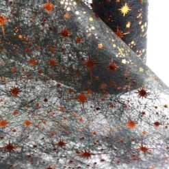 Avec Vaisselle Jetable Discount vous n’en avez pas fini avec les chemins de table ! Vous pouvez compter sur nous pour vous sortir le modèle surprise ! Là c’est un chemin de table noir pour le fond et couleur cuivre pour ses motifs étoilés. Que la fête commence ! Une matière délicate et transparente, tissée de filaments et d’étoiles feront une lumière très particulière. C’est toute la table et ses objets – assiettes, verres, couverts – qui va être illuminée et pour peu qu’une guirlande ou des photophores soient de la partie … On ne vous raconte pas !